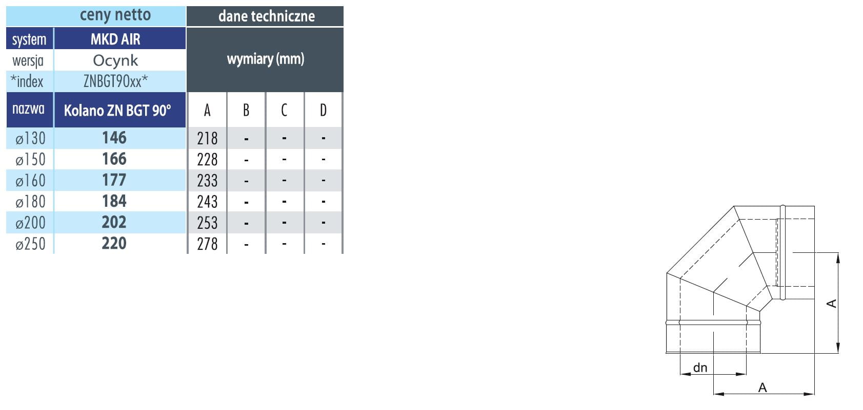 Wentylacyjne kolano 90 stopni ϕ 200/260, ocynk