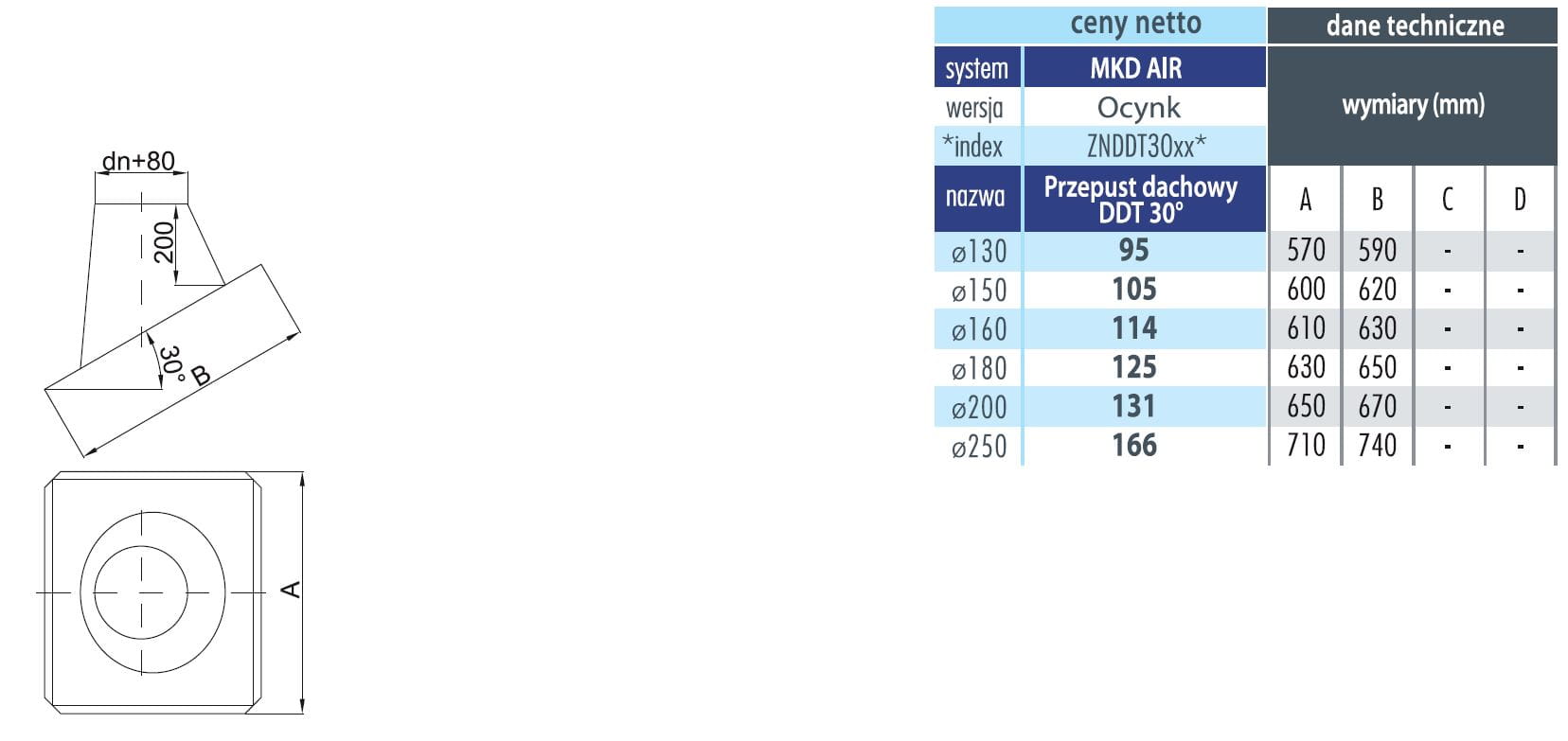 Wentylacyjny przepust dachowy 20-35 stopni ϕ 150/210, ocynk