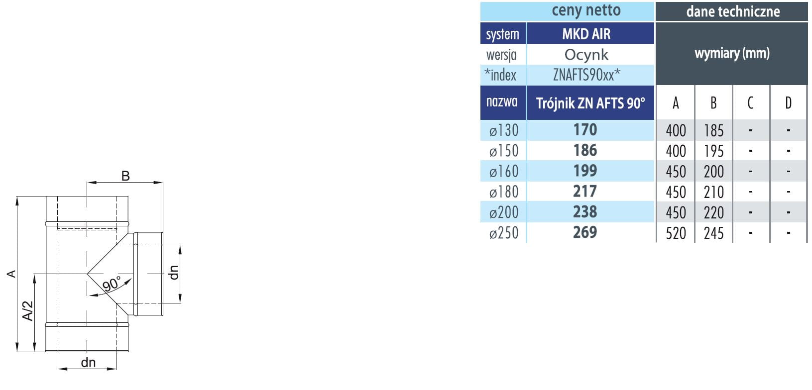 Wentylacyjny trójnik 90 ϕ 150/210, ocynk