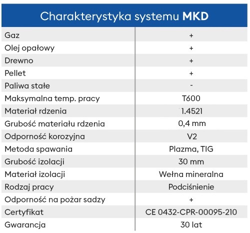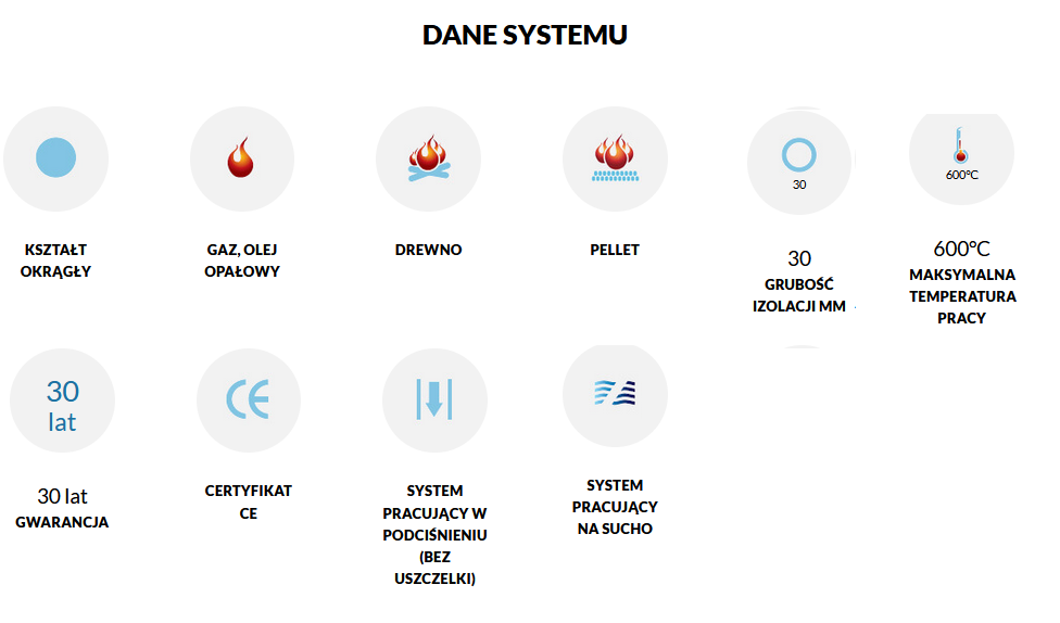 System może pracować tylko na sucho w temperaturze do 600°C.