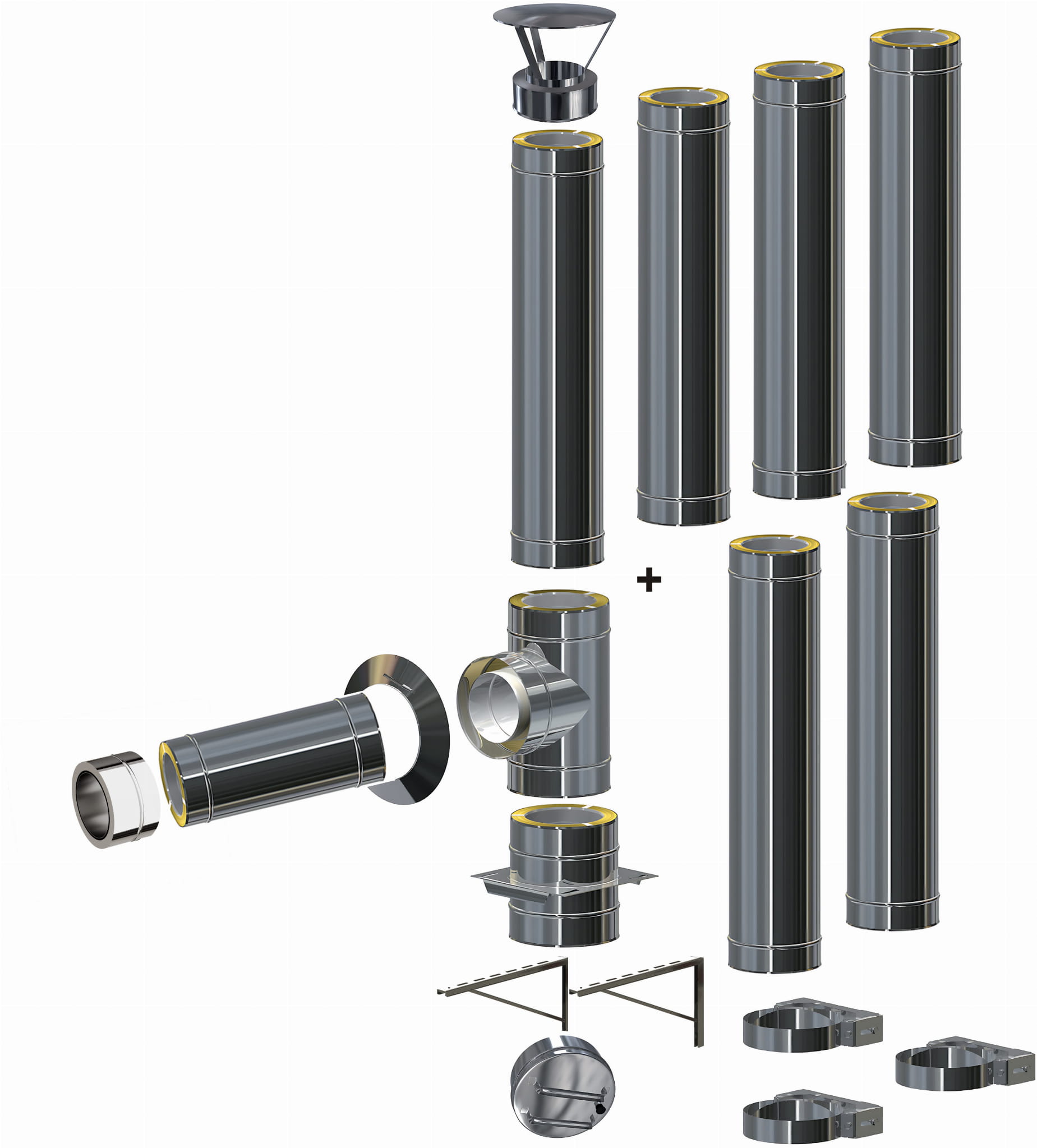 System dwuścienny izolowany, stosowany jako samodzielny komin zewnętrzny do kotłów atmosferycznych i kominków. Pozwala na ustawienie urządzenia grzewczego (kotła, kominka) w dowolnym miejscu w obiekcie, ponieważ komin prowadzi się na zewnątrz, montując go przy ścianie.