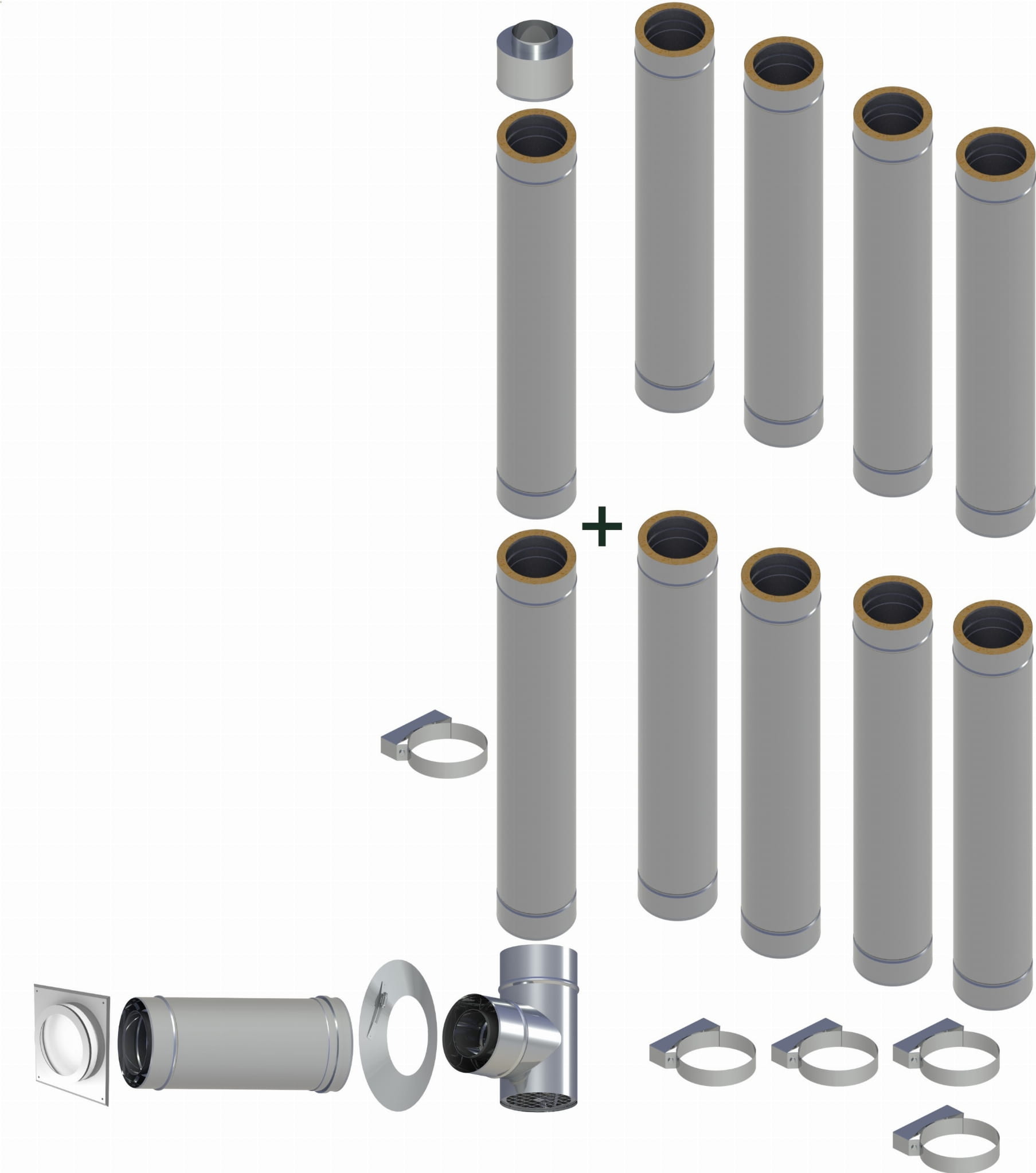 Do 200 Pa, szczelny, dwuścienny komin ze stali nierdzewnej wykonany z wysokiej jakości stali nierdzewnej do instalacji jako komin na zewnątrz. Niezbędną izolację cieplną zapewnia izolacja mineralna o grubości 22,5 mm między rurami wewnętrzną i zewnętrzną. W zależności od odpowiedniego materiału uszczelniającego, nadaje się do podłączenia do nowoczesnych pieców kondensacyjnych olejowo-gazowych o temperaturze spalin do 120 °C . Uszczelka EPDM