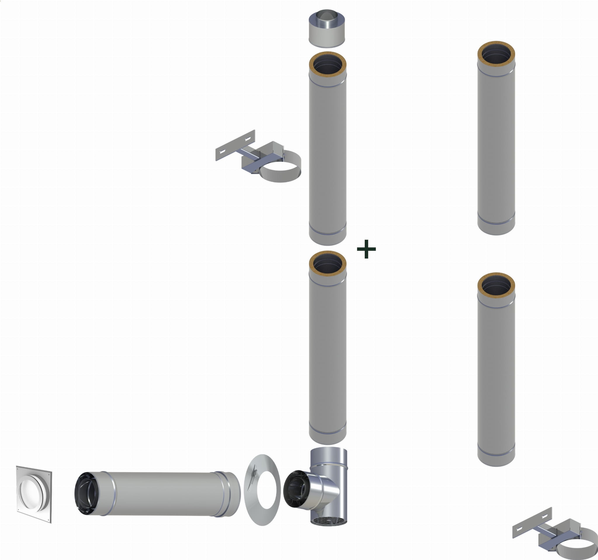 Do 200 Pa, szczelny, dwuścienny komin ze stali nierdzewnej wykonany z wysokiej jakości stali nierdzewnej do instalacji jako komin na zewnątrz. Niezbędną izolację cieplną zapewnia izolacja mineralna o grubości 22,5 mm między rurami wewnętrzną i zewnętrzną. W zależności od odpowiedniego materiału uszczelniającego, nadaje się do podłączenia do nowoczesnych pieców kondensacyjnych olejowo-gazowych o temperaturze spalin do 120 °C . Uszczelka EPDM
