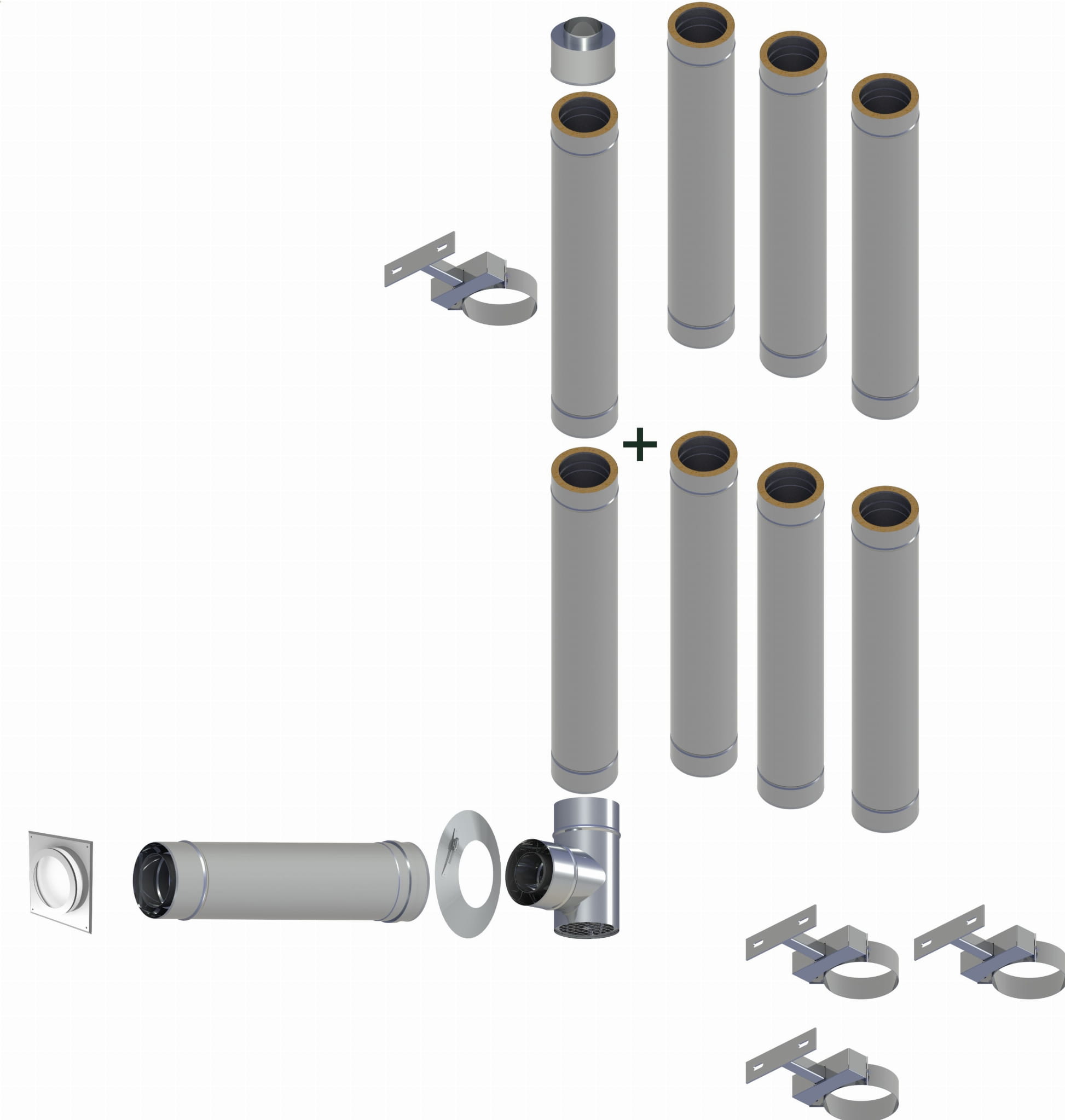Do 200 Pa, szczelny, dwuścienny komin ze stali nierdzewnej wykonany z wysokiej jakości stali nierdzewnej do instalacji jako komin na zewnątrz. Niezbędną izolację cieplną zapewnia izolacja mineralna o grubości 22,5 mm między rurami wewnętrzną i zewnętrzną. W zależności od odpowiedniego materiału uszczelniającego, nadaje się do podłączenia do nowoczesnych pieców kondensacyjnych olejowo-gazowych o temperaturze spalin do 120 °C . Uszczelka EPDM